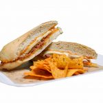Sandwich - local sausage with cheese and caramelized onion
